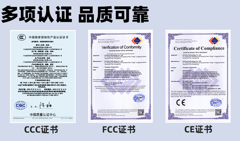 整機(jī)通過(guò)國(guó)家CCC強(qiáng)制認(rèn)證,CE,FCC,ROHS,REACH,CA65 |